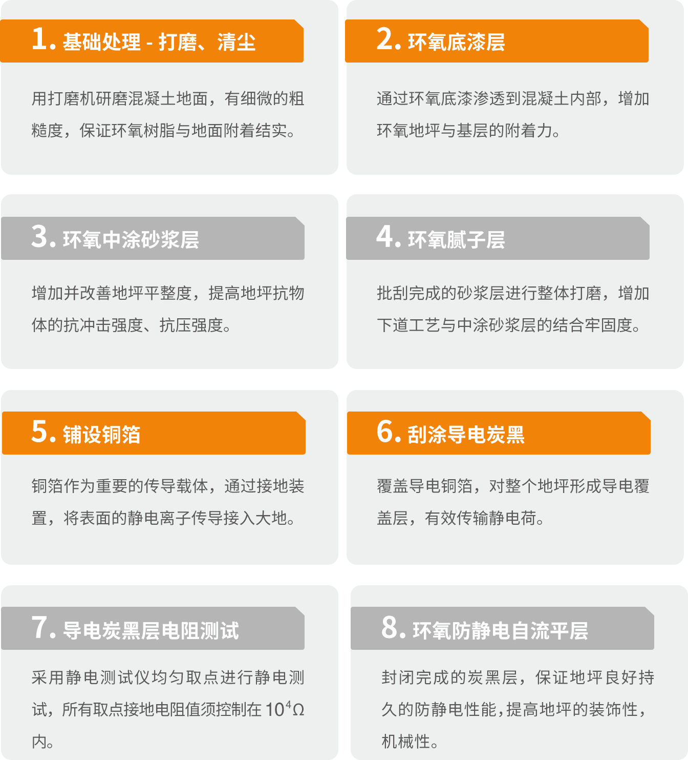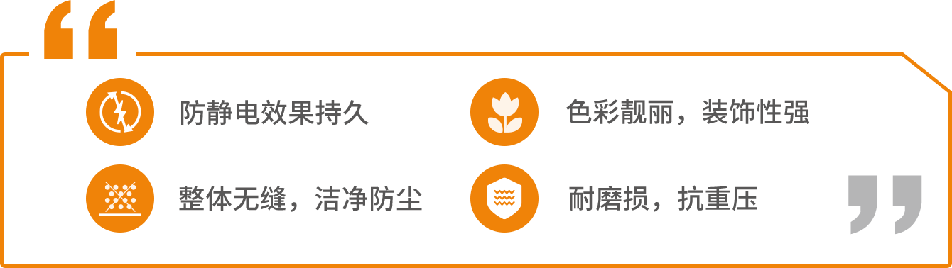 適用于高裝飾性、高潔凈度要求、有抗靜電要求的場(chǎng)所,如電子電器、精密儀器、紡織、化學(xué)、醫(yī)藥、軍工等一切需要防靜電或防爆場(chǎng)所的地面涂裝。