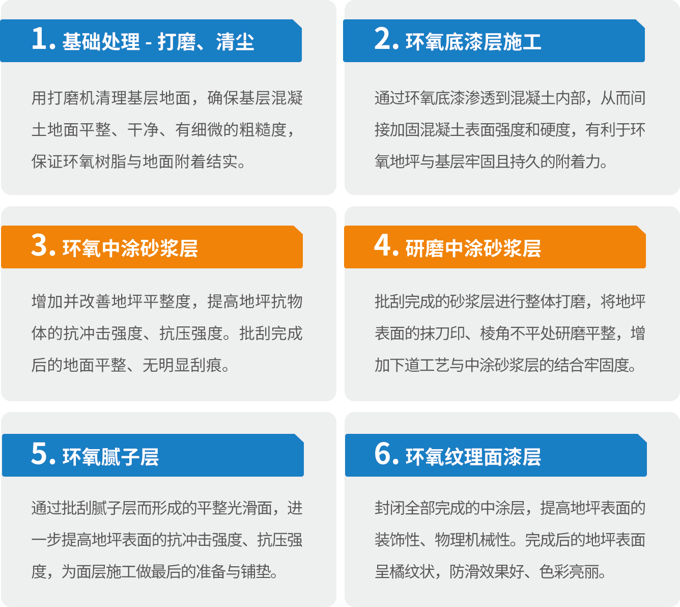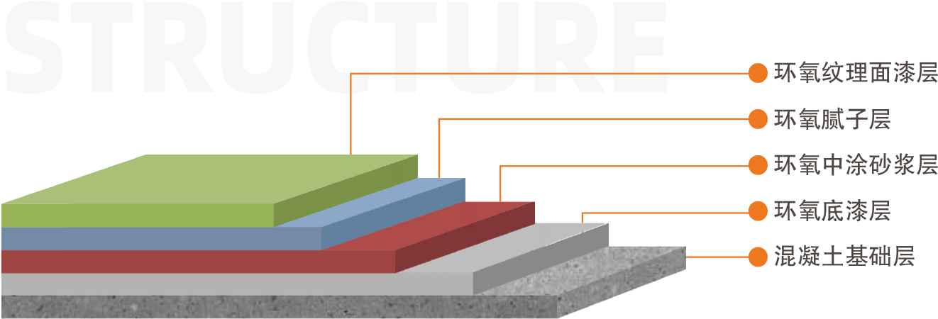 環(huán)氧紋理地坪又稱橘皮紋理地坪或拉毛地坪,其表面呈現(xiàn)類似于橘子皮的紋理,具有優(yōu)異的耐磨防滑、耐壓抗沖擊性能,能有效抵抗車輛長年累月的碾壓;地面整體無縫、耐油、防霉防水,大大減少因長期潮濕所導致地面脫殼、起砂、起塵、裂縫等現(xiàn)象。