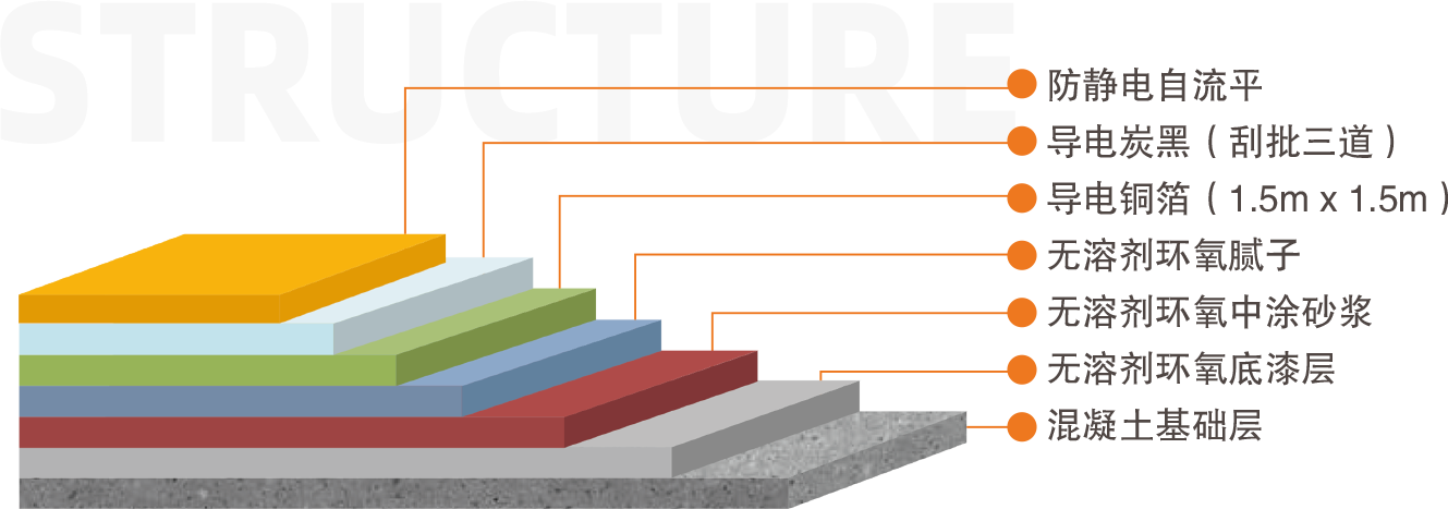 環(huán)氧防靜電自流平是一種新型的地坪涂料,可以有效防止靜電的產(chǎn)生和積累。其原理是利用導(dǎo)電材料將靜電導(dǎo)入到銅箔層,再經(jīng)銅箔進(jìn)入導(dǎo)電池進(jìn)行消耗,從而達(dá)到防止靜電的目的。
